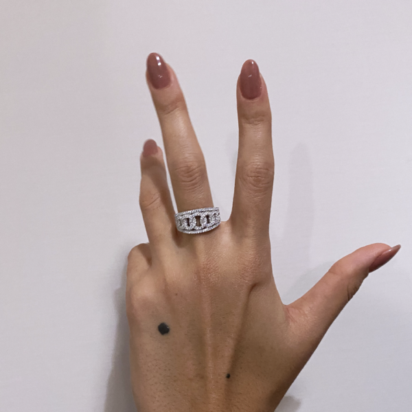 Anello fascione zirconato con groumetta centrale in argento 925% nickel free.