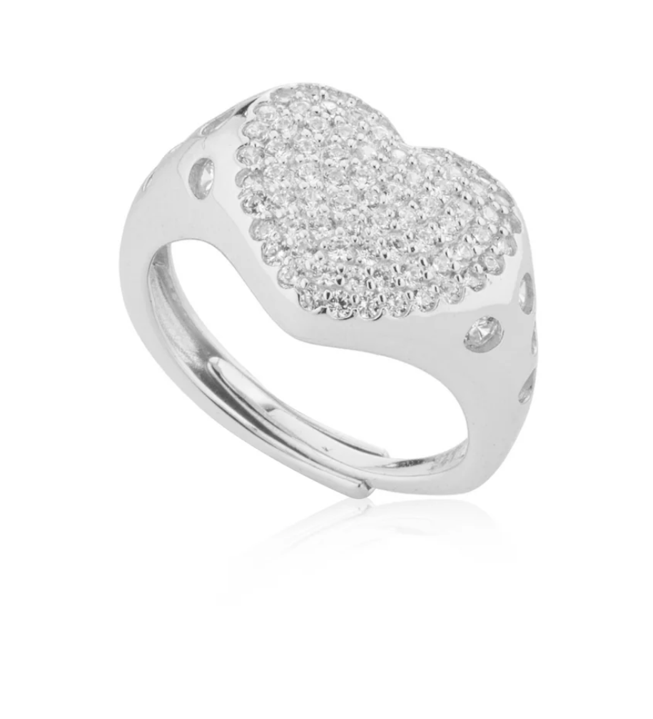 Anelli, Anelli donna, DonnaAnello chevalier in argento 925‰ regolabile, impreziosito da un cuore zirconato brillante. Un gioiello dal carattere deciso ma romantico, ideale per chi ama uno stile elegante con un tocco moderno.