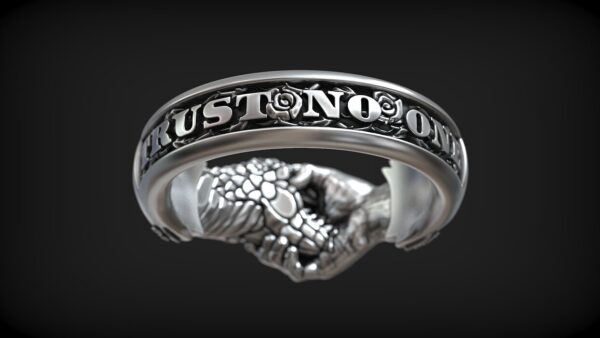 Con mano e serpente e dietro con scritta -TRUST NO ONE-.