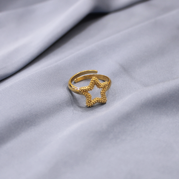 Anello regolabile con stella puntellata in argento 925% nickel free.