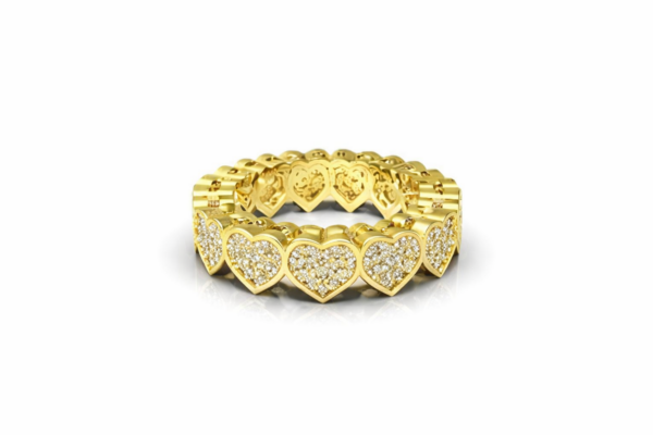 Anelli VMAnello Veretta con cuori zirconati in argento giallo della collezione VM.