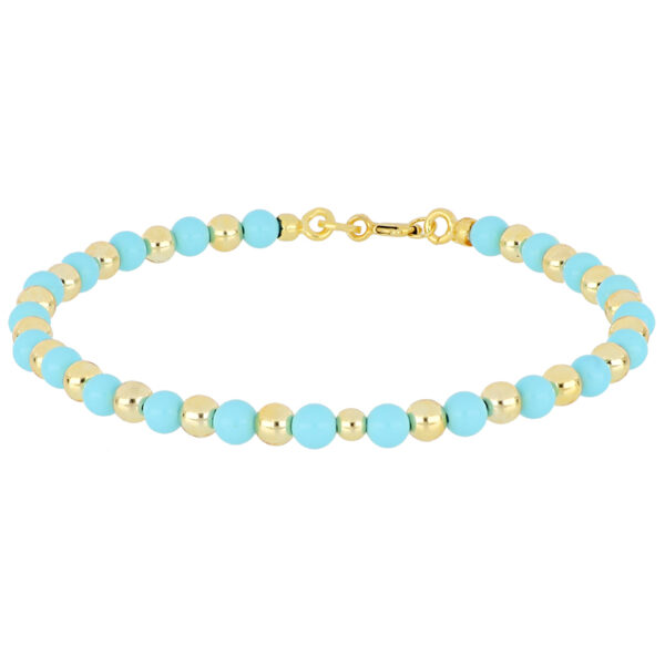 Bracciali donna, DonnaBracciale in argento giallo 925% con sfere turchesi alternate, chiusura con moschettone regolabile.