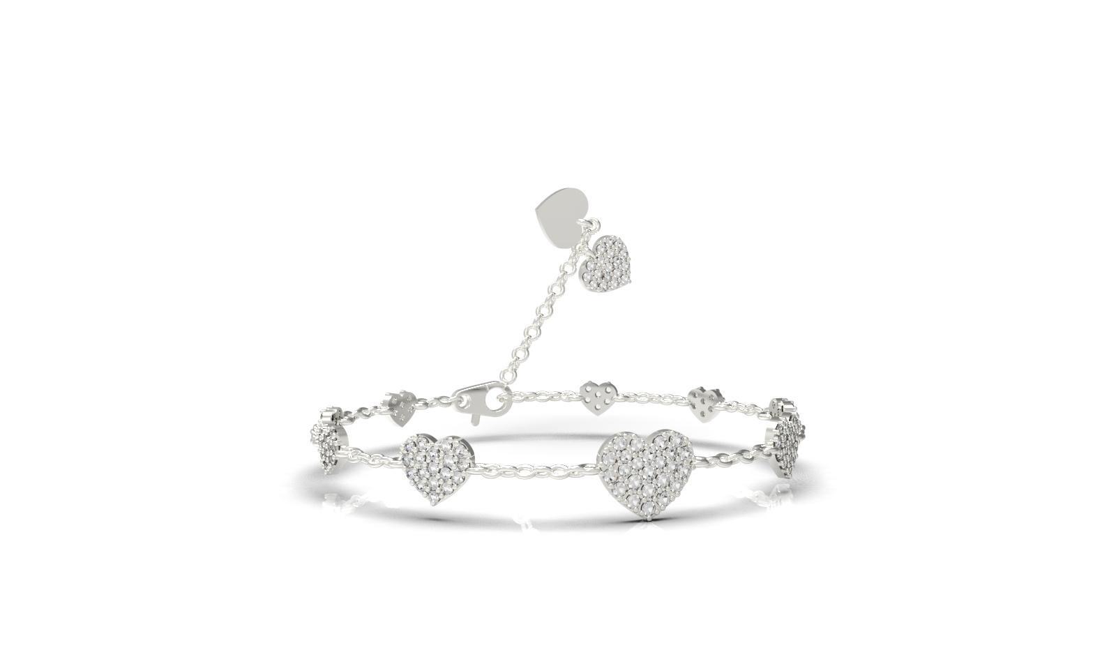 Bracciale con cuori zirconati in argento bianco e in argento giallo.