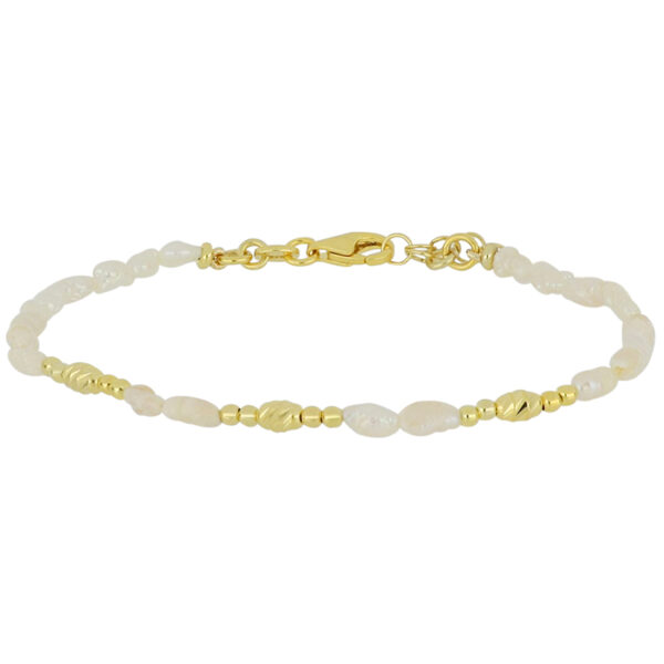 Bracciale in argento giallo 925% con perline, chiusura con moschettone regolabile.