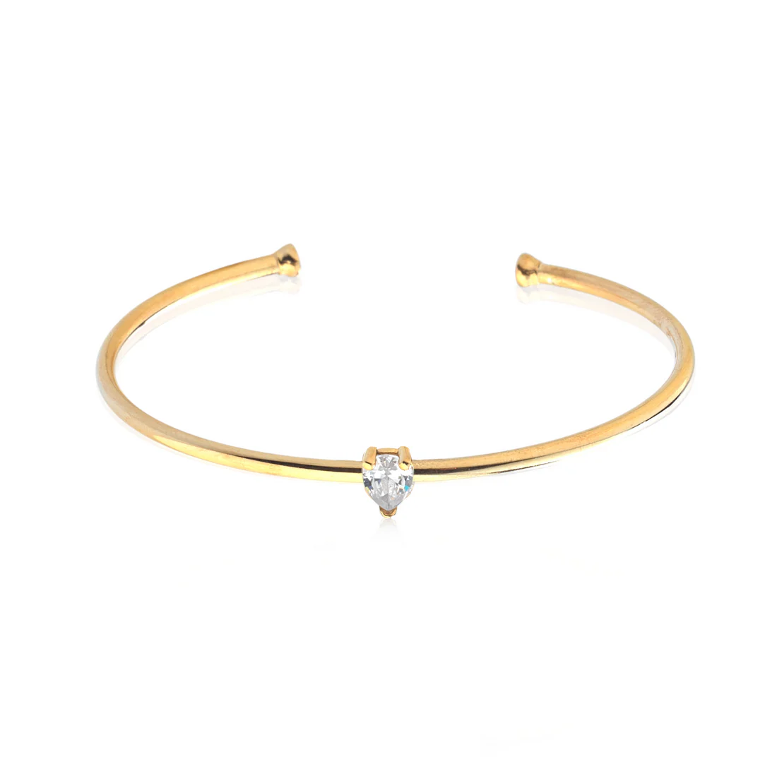 Bracciale rigido in argento 925% dorato, impreziosito da uno zircone a forma di cuore. Un gioiello raffinato e luminoso, simbolo di eleganza e romanticismo, perfetto per valorizzare ogni look con un tocco prezioso.