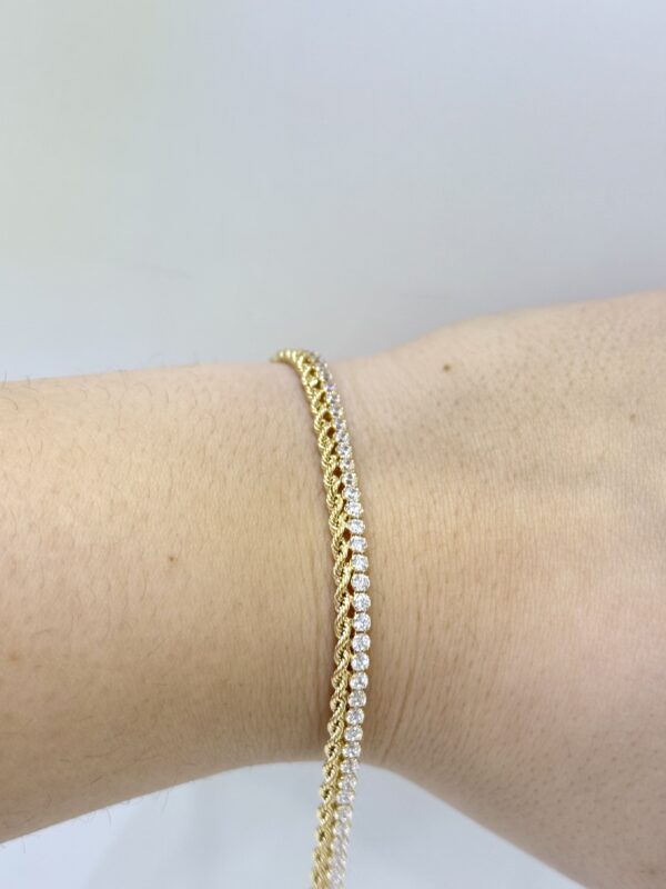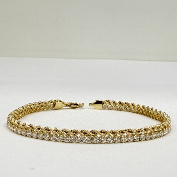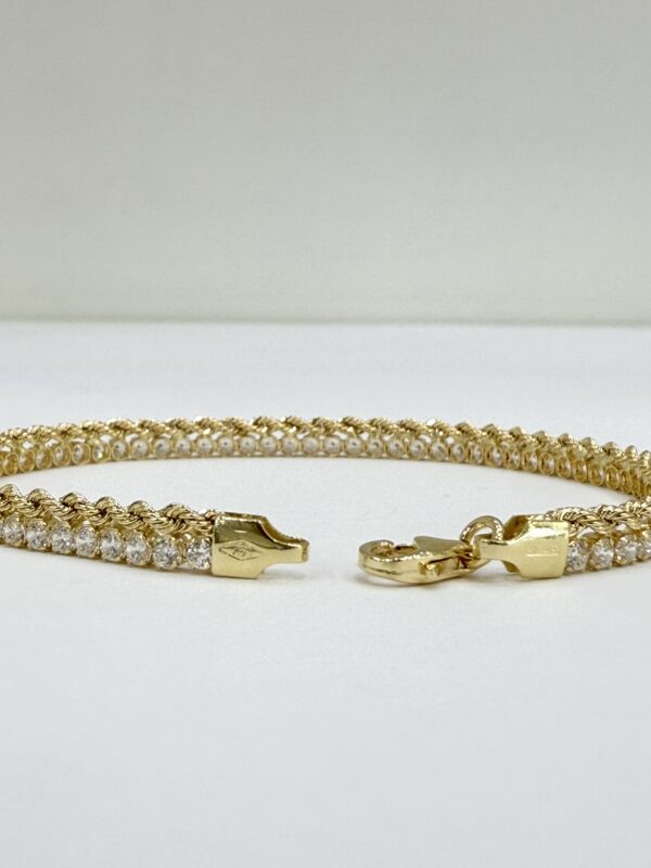 Bracciale intrecciato con zirconi in oro giallo 18kt.
