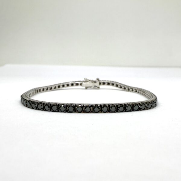 Bracciali Diamanti uomo, DiamantiUn elegante bracciale tennis in oro bianco e diamanti neri unisex che si distingue per la sua raffinatezza e lucentezza. Ideale per chi cerca un gioiello sia per occasioni speciali che per uso quotidiano.