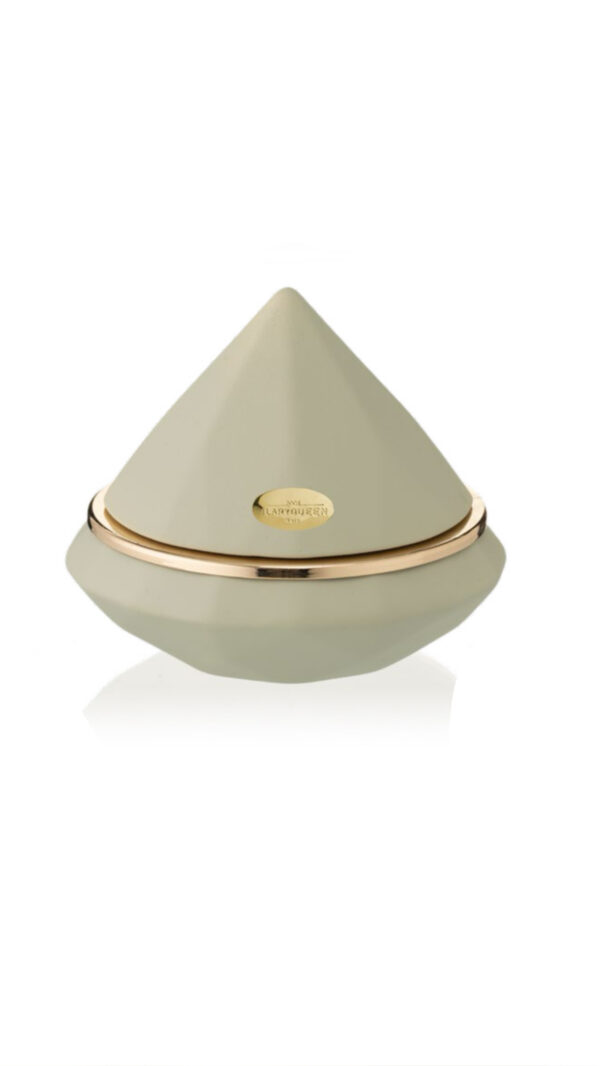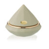 La forma geometrica e la finitura opaca lo rendono molto scultoreo, mentre il bordo dorato aggiunge un tocco di lusso e sofisticatezza.