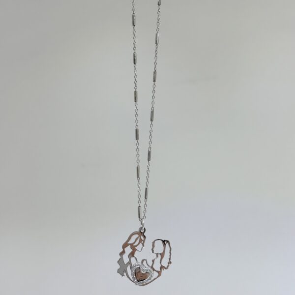 Collana in argento bianco 925%,con ciondolo e cuore zirconato centrale, da 45 cm.