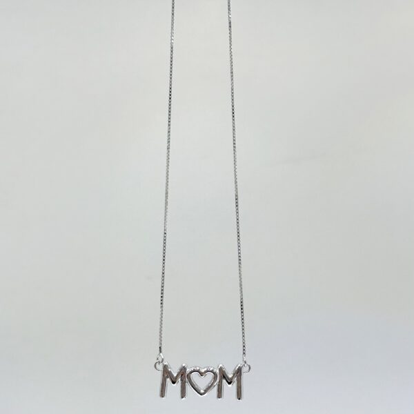 Collana in argento 925% bianco con scritta MOM, da 43 cm +2 cm di aneletti.