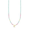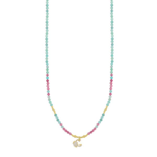 Collana in argento giallo 925% con sfere colorate, chiusura con moschettone.
