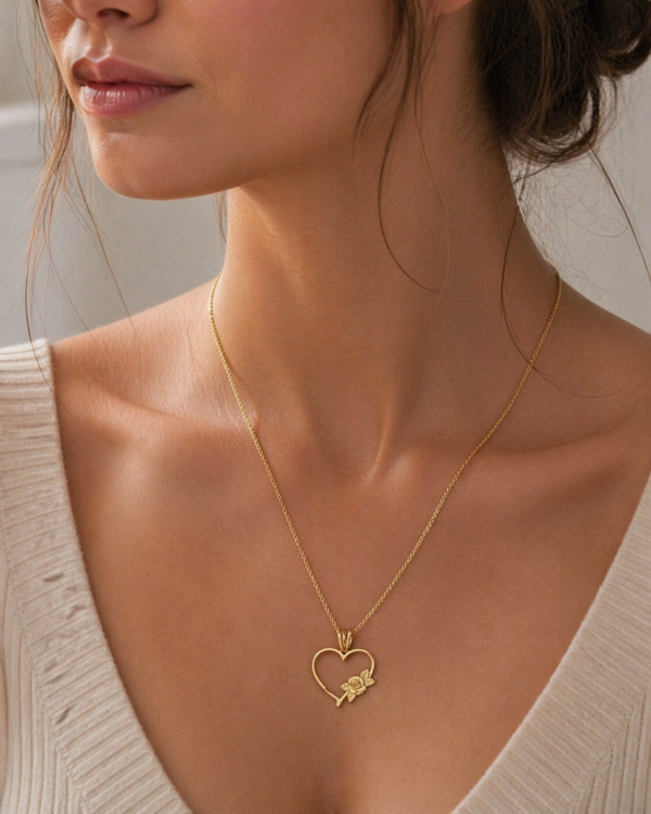 COLLANA CUORE TRAFORATO CON ROSA E BOX