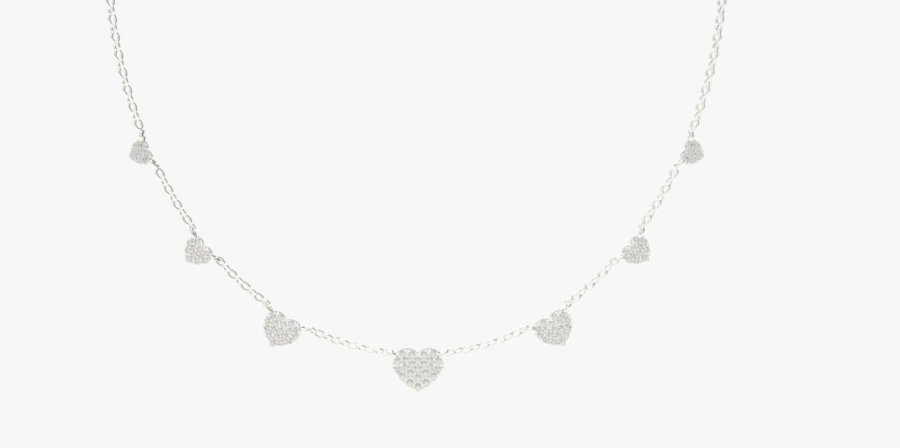 Collana cuori pendenti zirconati in argento giallo e argento bianco della collezione VM