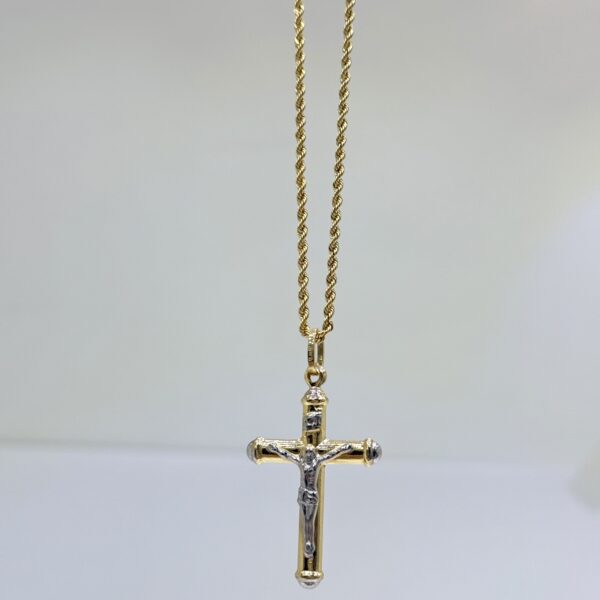 Croce liscia con cristo bicolore, la lunghezza è di 3cm.