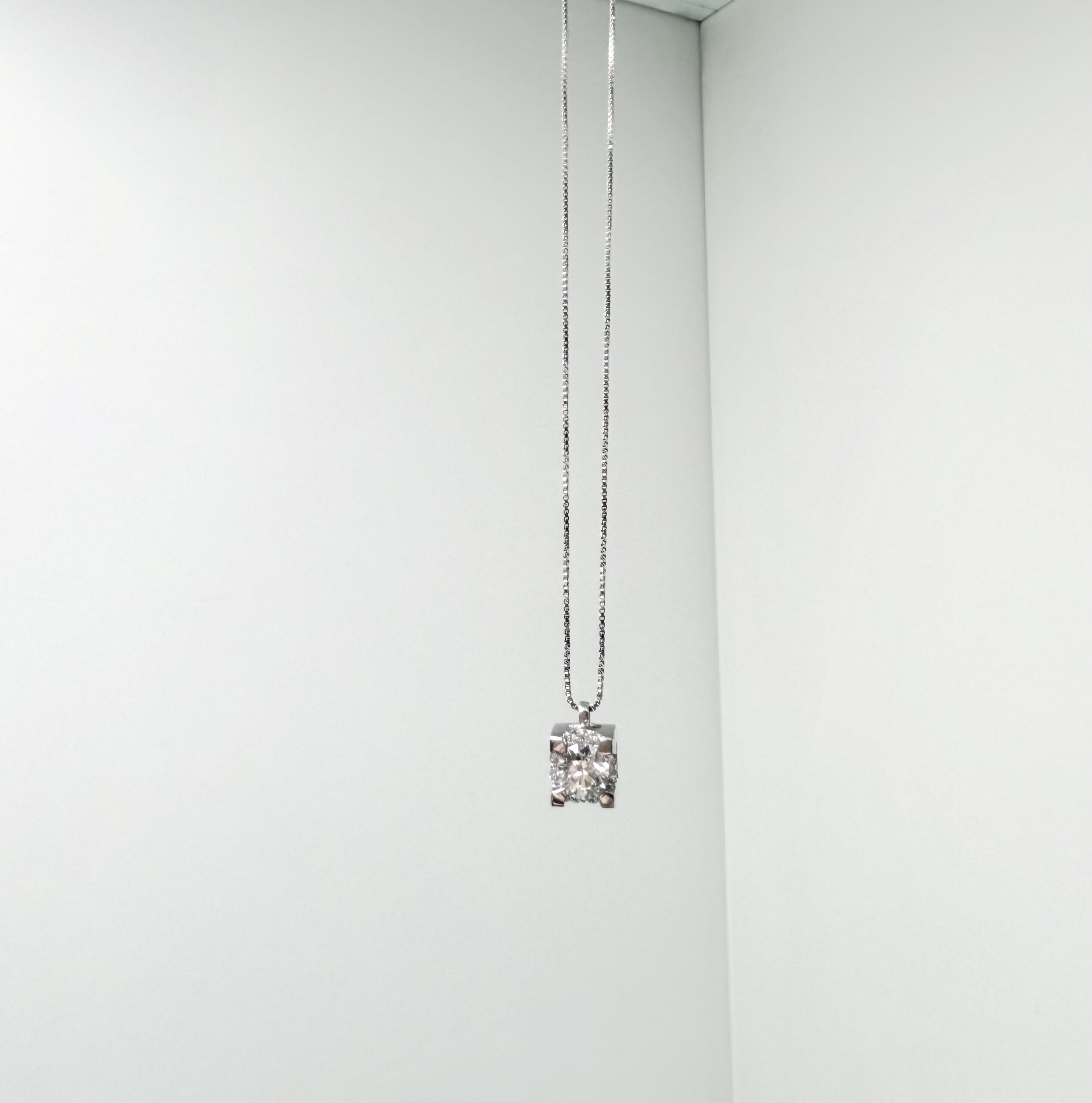 Collane Diamanti donna, DiamantiLa collana con punto luce è ideale per le donne che cercano un gioiello versatile che possa essere indossato in diverse occasioni.