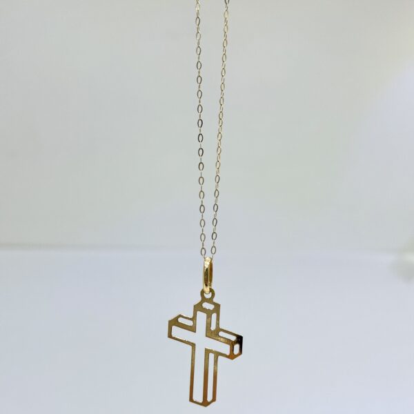 Croce a lastra in oro giallo tridimensionale.