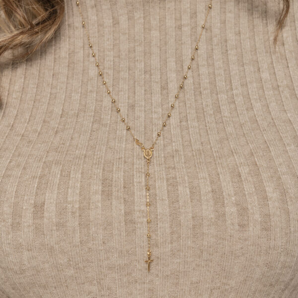 Collana rosario in oro giallo 18 kt modello pendente con sfera liscia da 2,5 mm con finitura lucida a 60 cm.