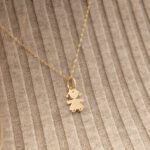 Collana elica con effetto specchiato a 50 cm con ciondolo orso da 2 cm satinato in oro 18 kt.