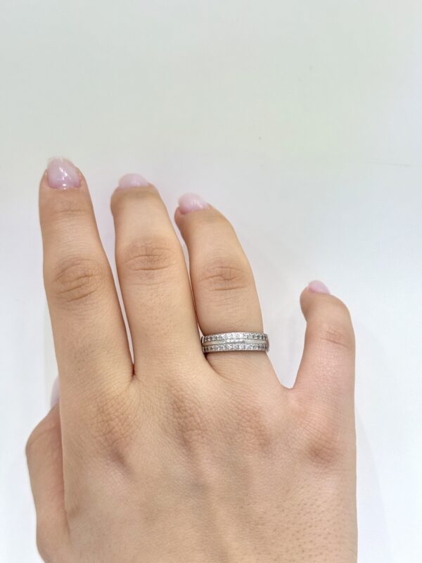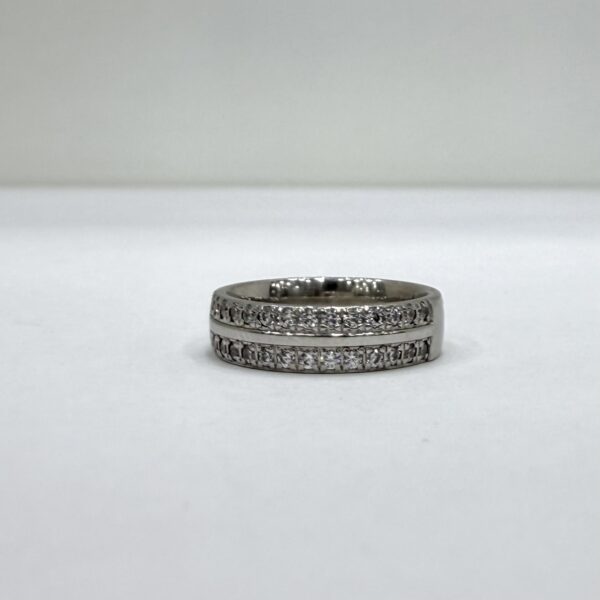Coppia fedine in argento bianco 925% con zirconi bianchi. (Specificare nelle note le misure)