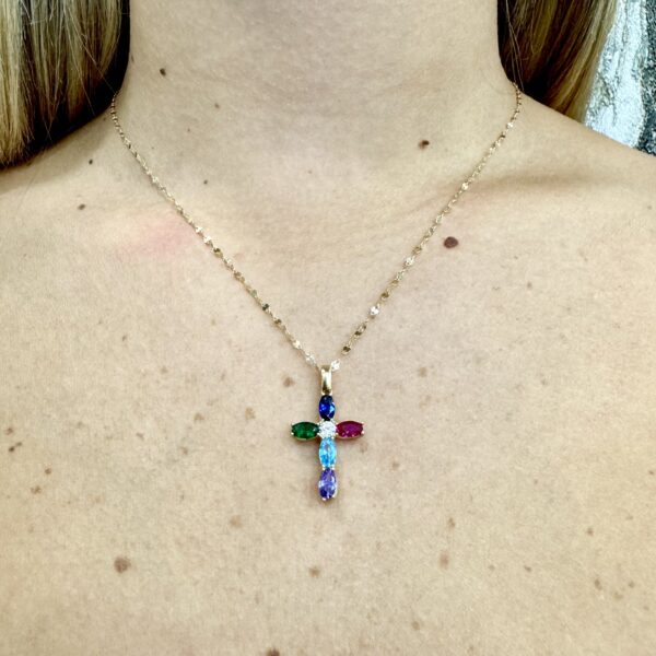 Croce in oro 18 kt con pietre colorate