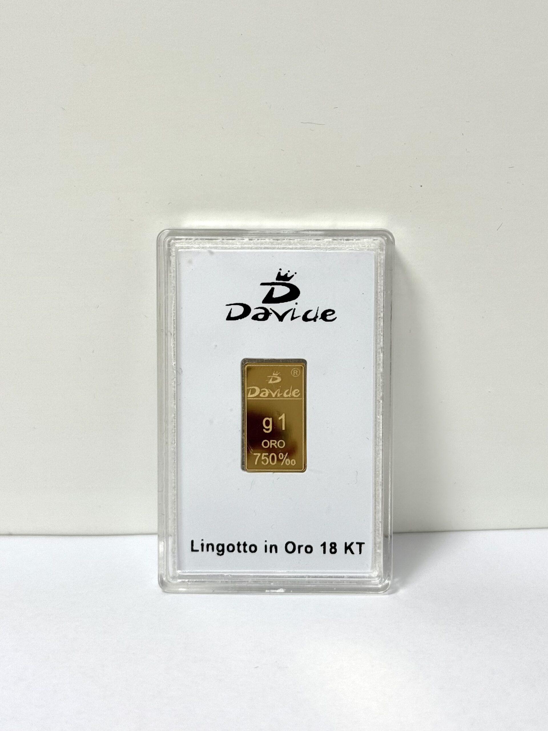 Lingotto da 1 grammo in oro 18kt blisterato.