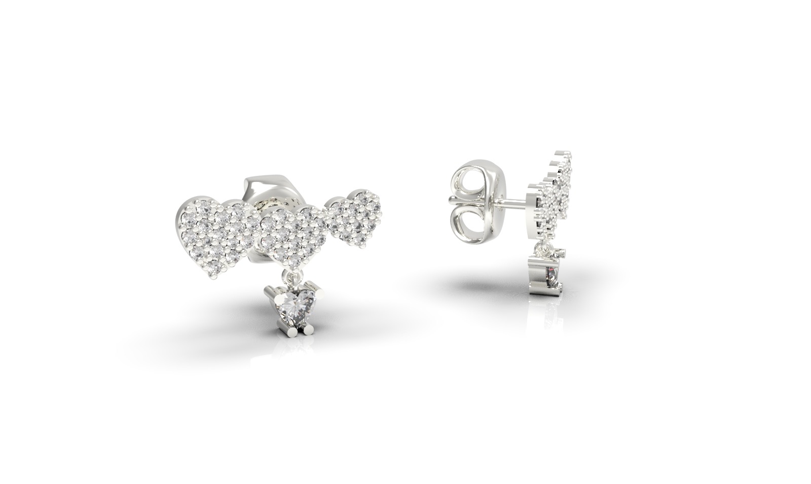 Orecchini motivo cuore pavé e zircone pendente in argento 925% della collezione VM disponibili nella variante gialla o bianca.