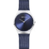 Orologio BERING, cassa in acciaio inossidabile del diametro di 30 mm, spessore di 6 mm e ansa da 16 mm, quadrante blu con indici minimal , vetro zaffiro, water resistant 3 ATM, movimento al quarzo, bracciale blu in acciaio inossidabile, maglia milano.