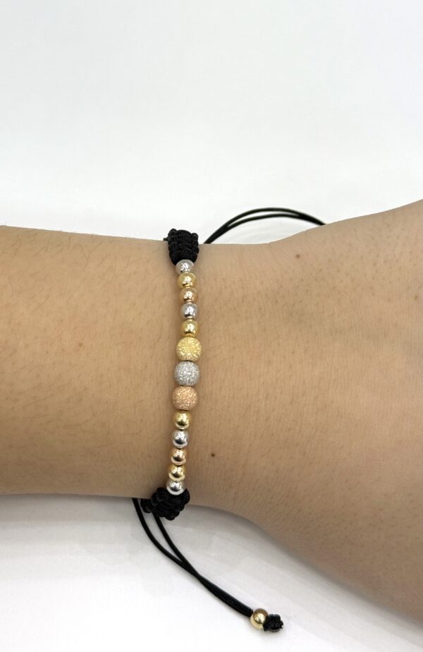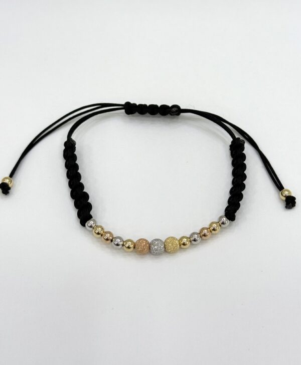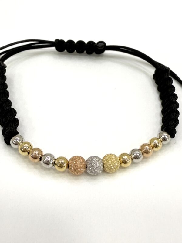 Bracciale unisex con sfere in oro18kt giallo, rosa e bianco, lucide e diamantate.