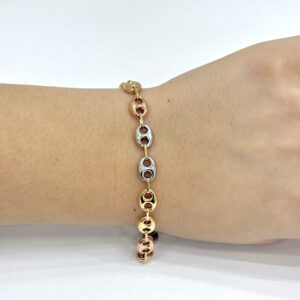 BRACCIALE MAGLIA MARINA IN ORO ROSA, GIALLO E BIANCO 2 MISURA
