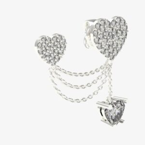 ORECCHINO DOPPIO CUORE CON CATENE ARGENTO SINGOLO